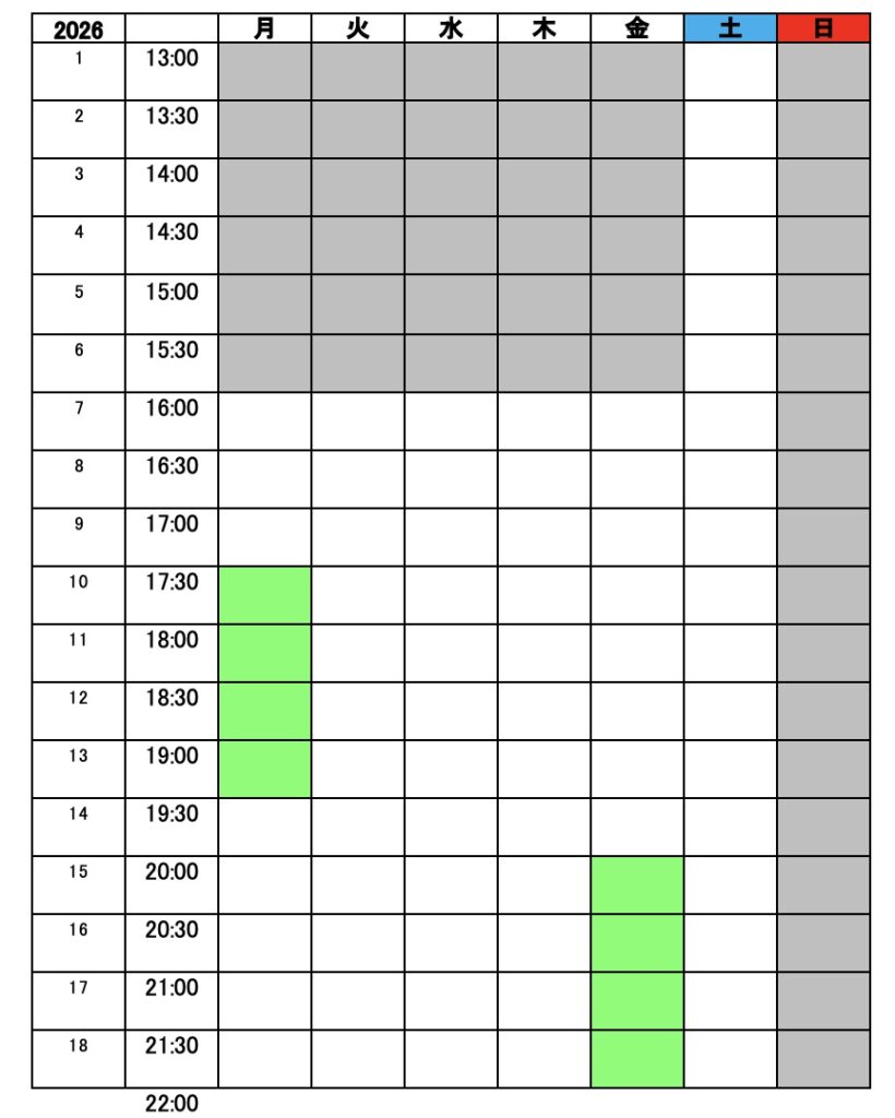 2026年2月から、指導時間を変更します。