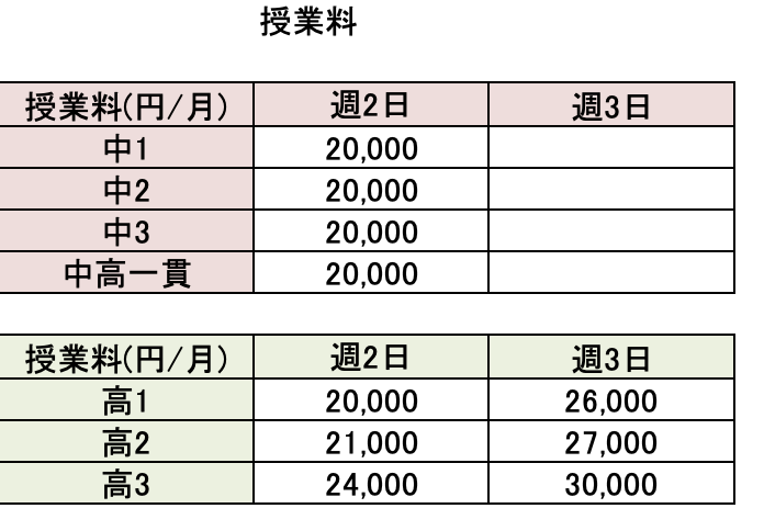 ※中1,中2の授業料を改定